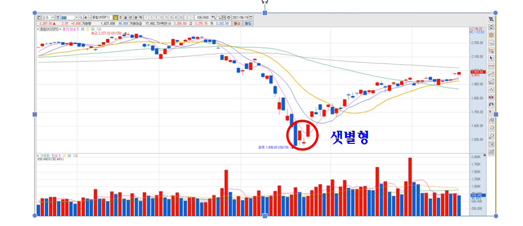 ○ 코스피 2020년 3월 대폭락후 나타난 샛별형 캔들